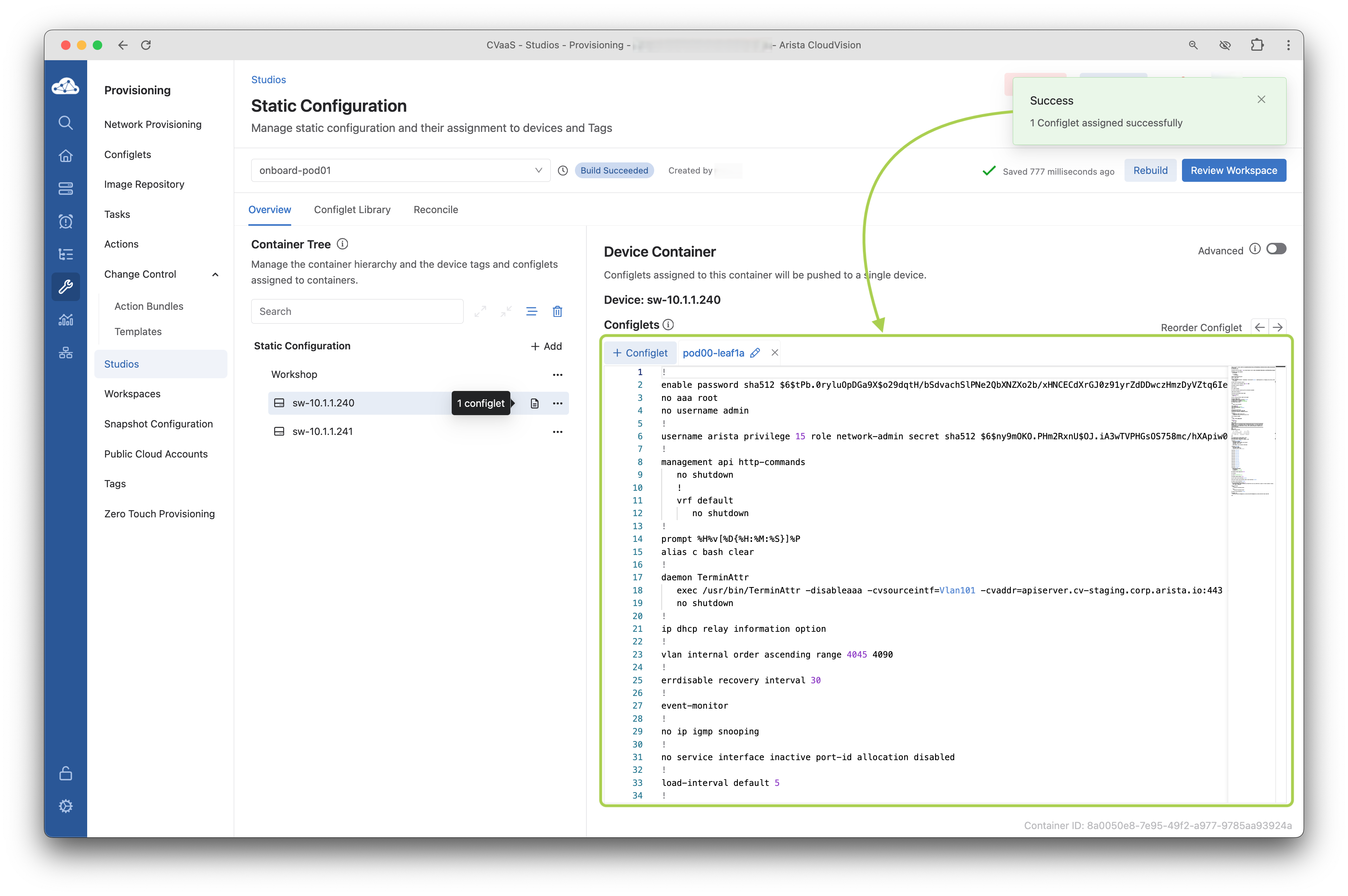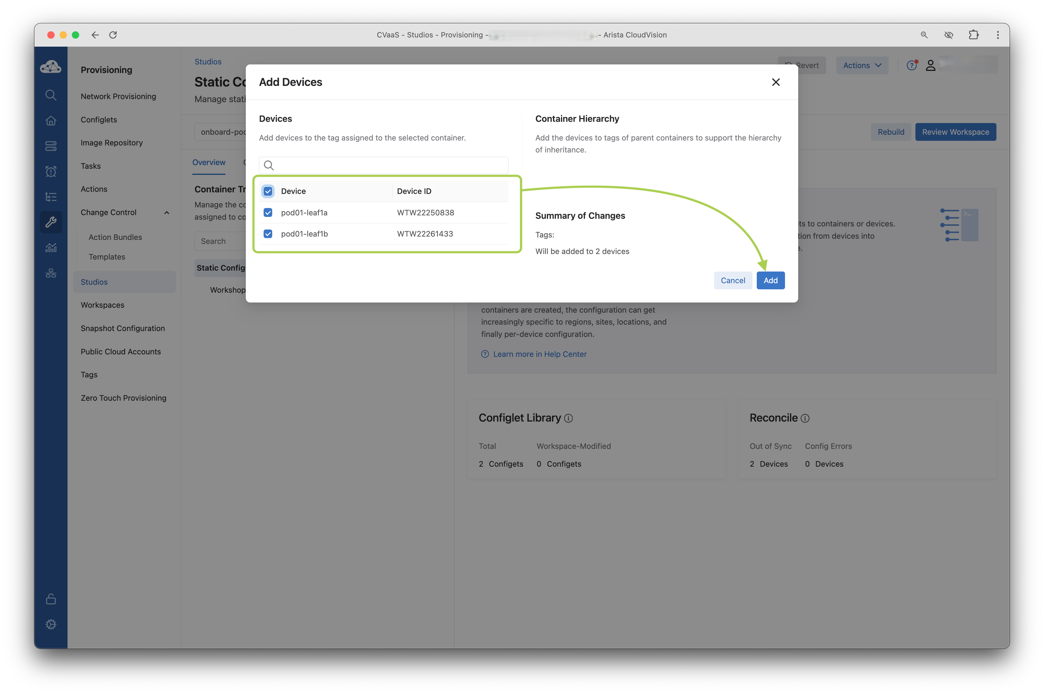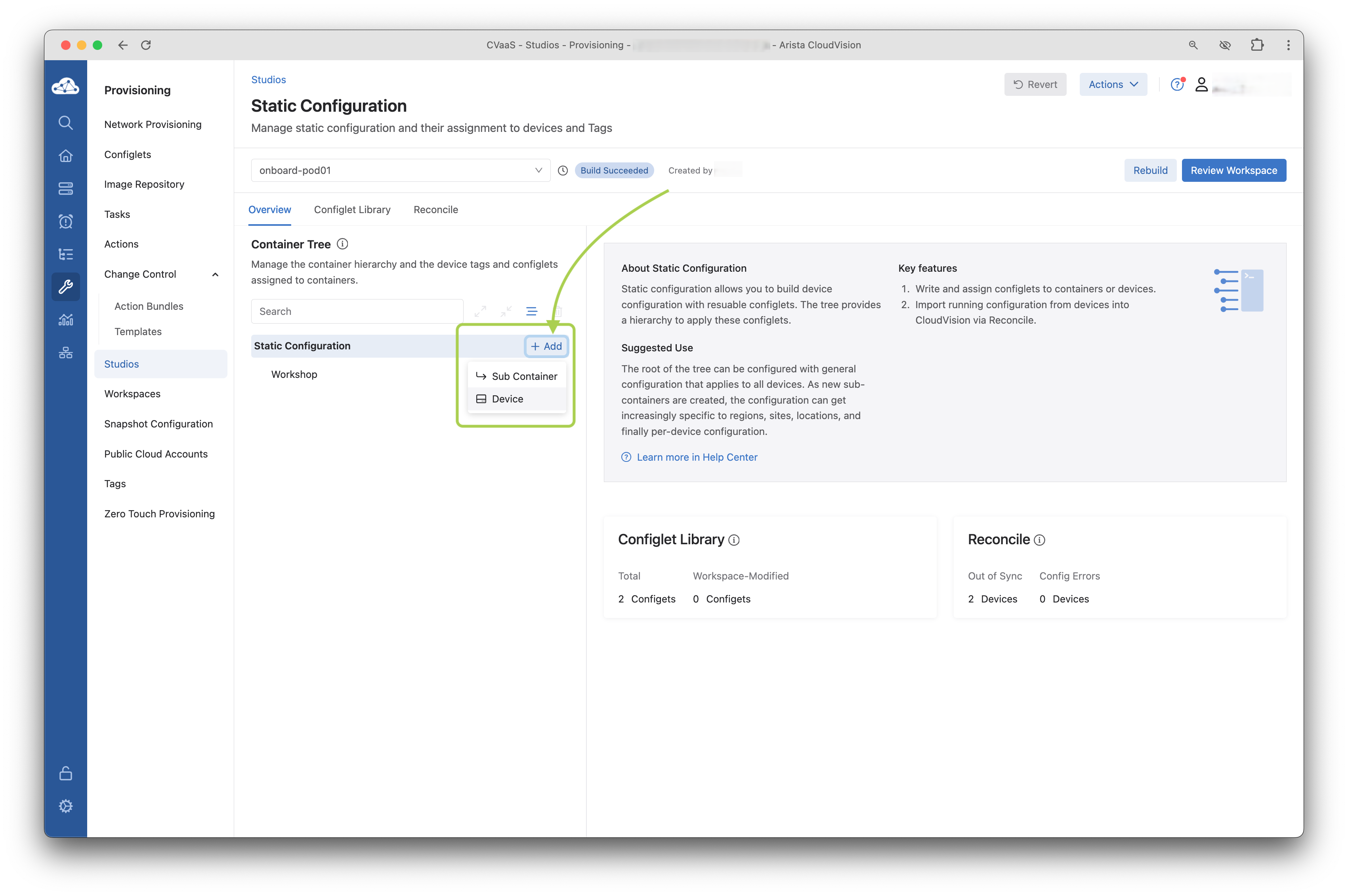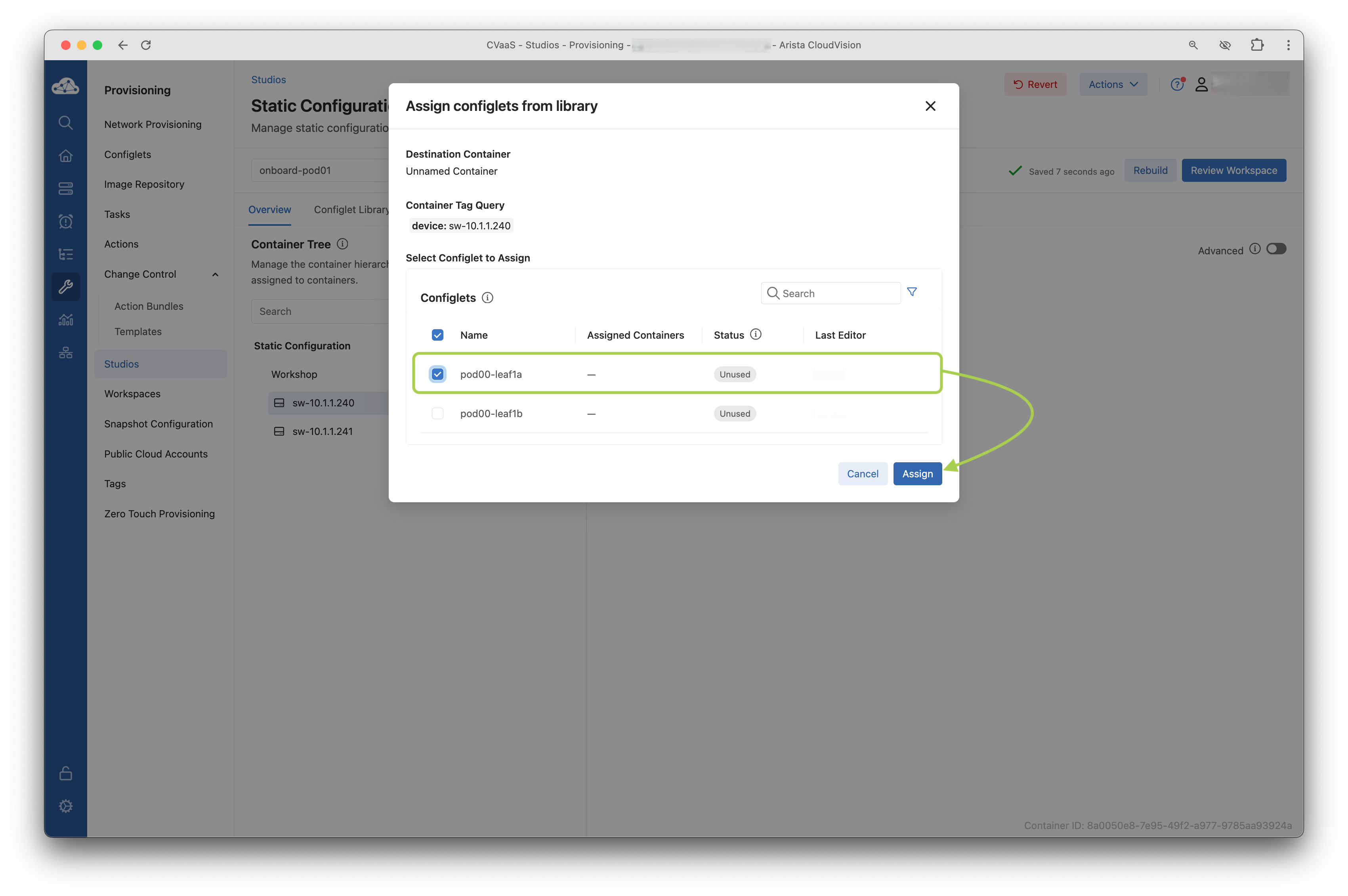 In this lab you will be onboarding your switch using CloudVision Studios, adding your new campus leaf switch to an existing Campus Fabric.