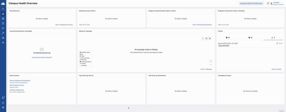 Devices>Inventoryto verify your switch appears with the correct hostname - Check that the device status shows as