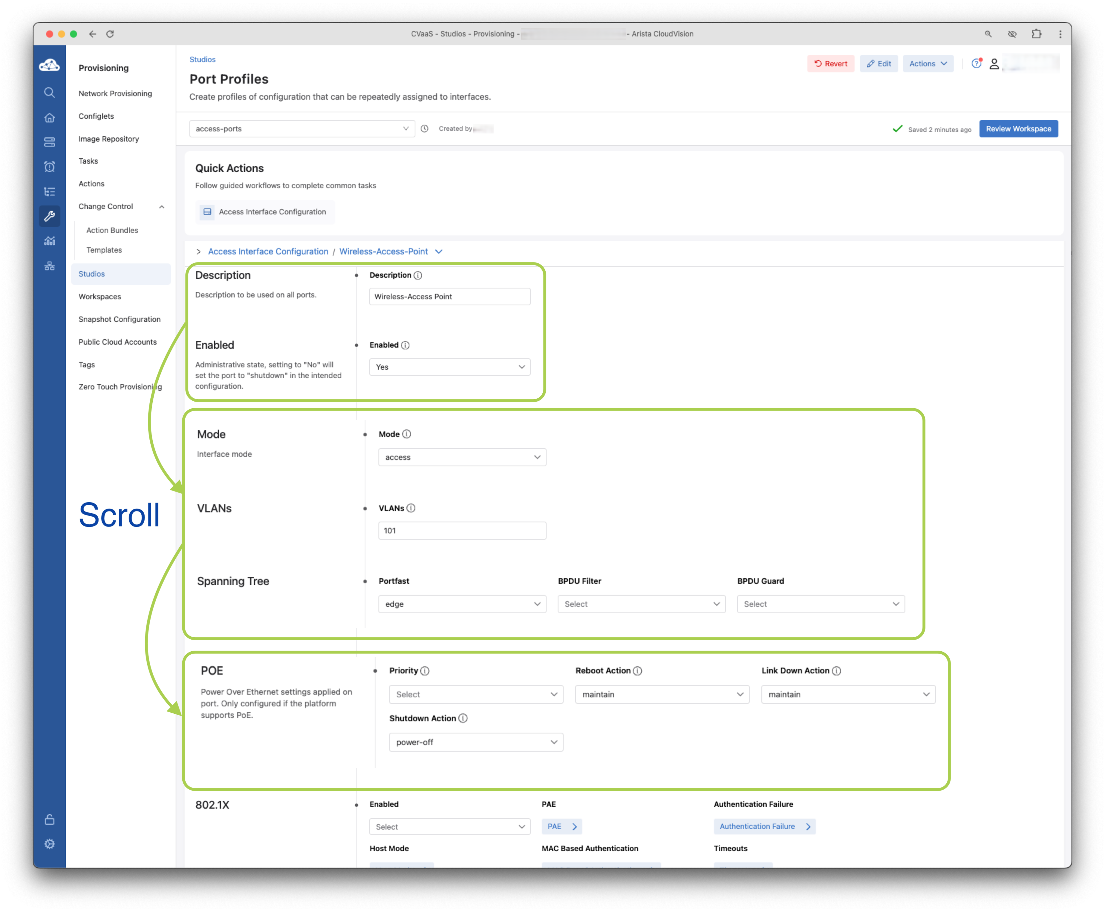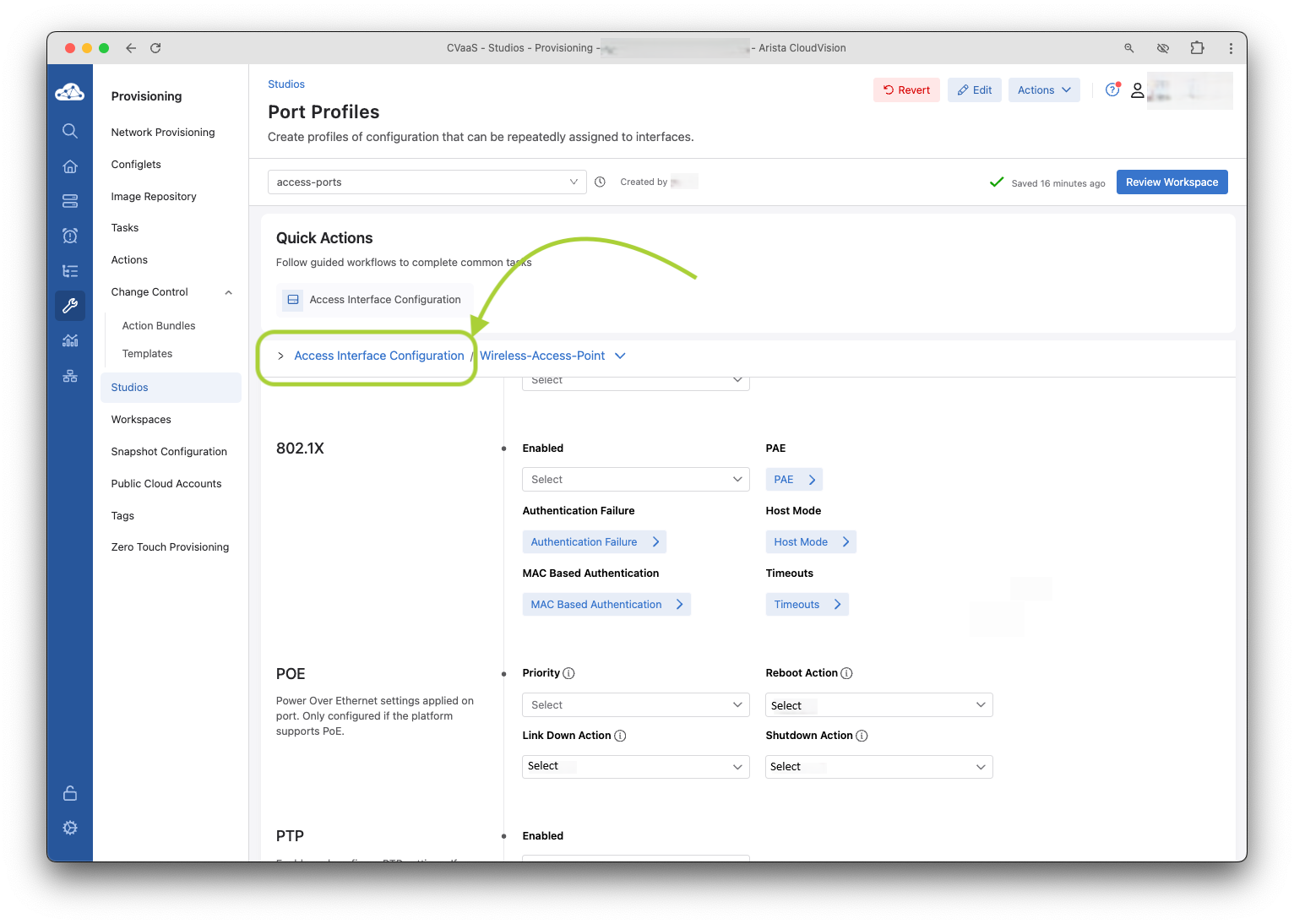 Now that you have port profiles, you can each individually configure ports on your assigned switch! No workspace required here 😄