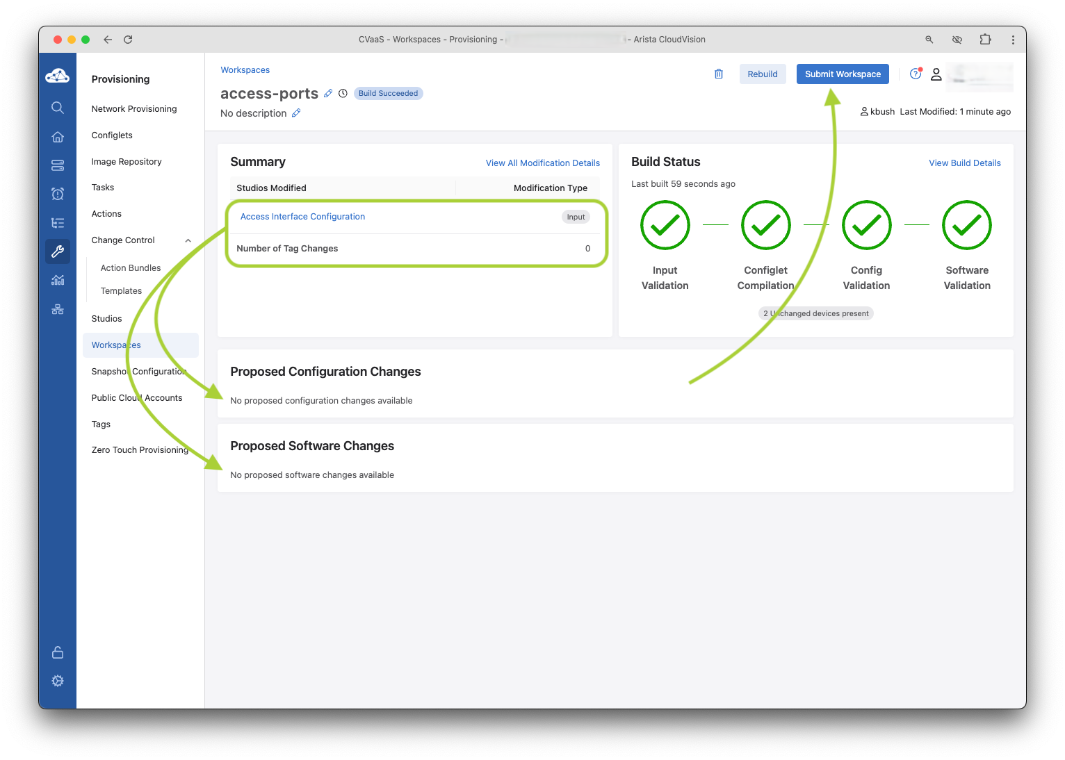 Submit the Workspacewhen you readyNote that device configuration has NOT changed after submitting this workspace. If you see something different, create a new workspace and try again or reach out to the event staff.