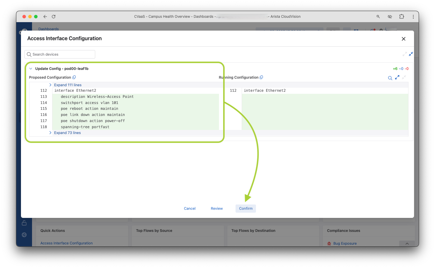 Updating tag Campus Fabric, clickReview - On Workspace Review, click