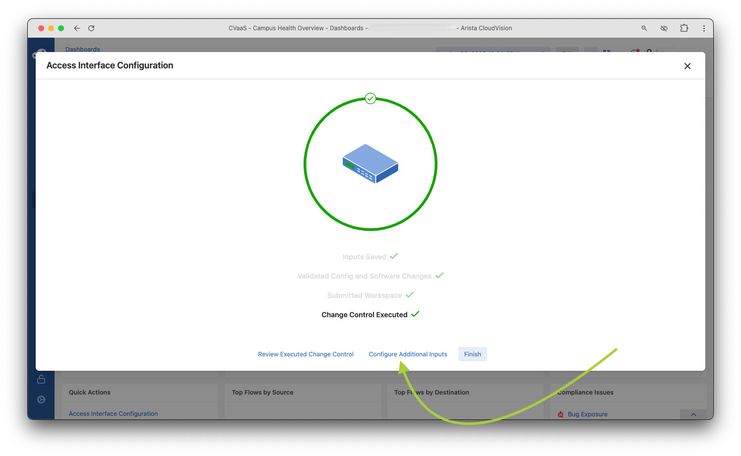 Change Controlhas been executed, clickConfigure Additional Inputsto configure another access port -