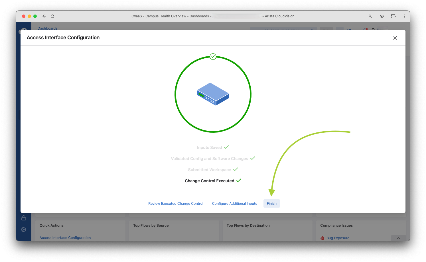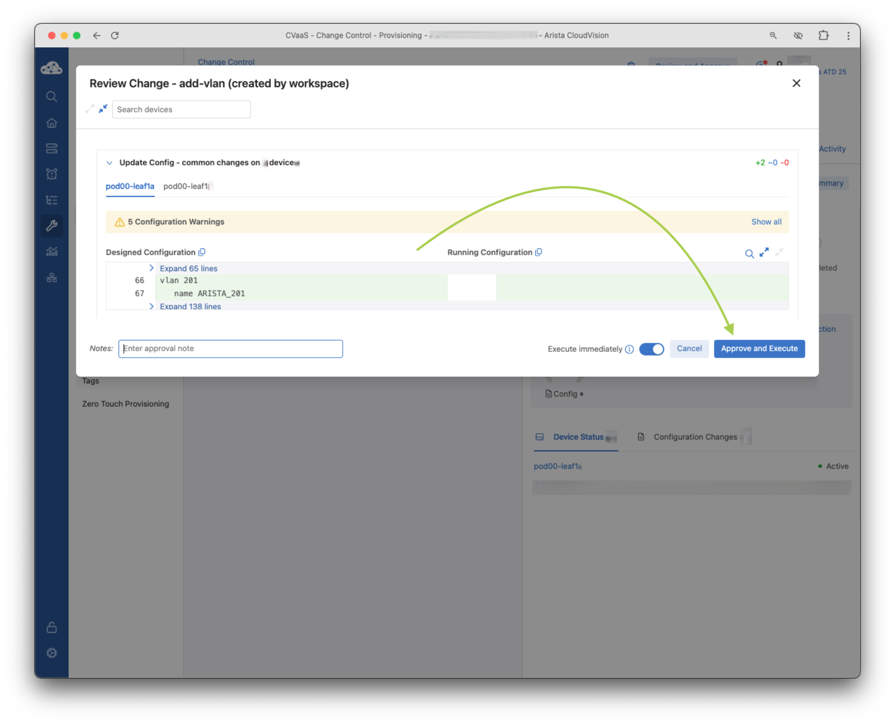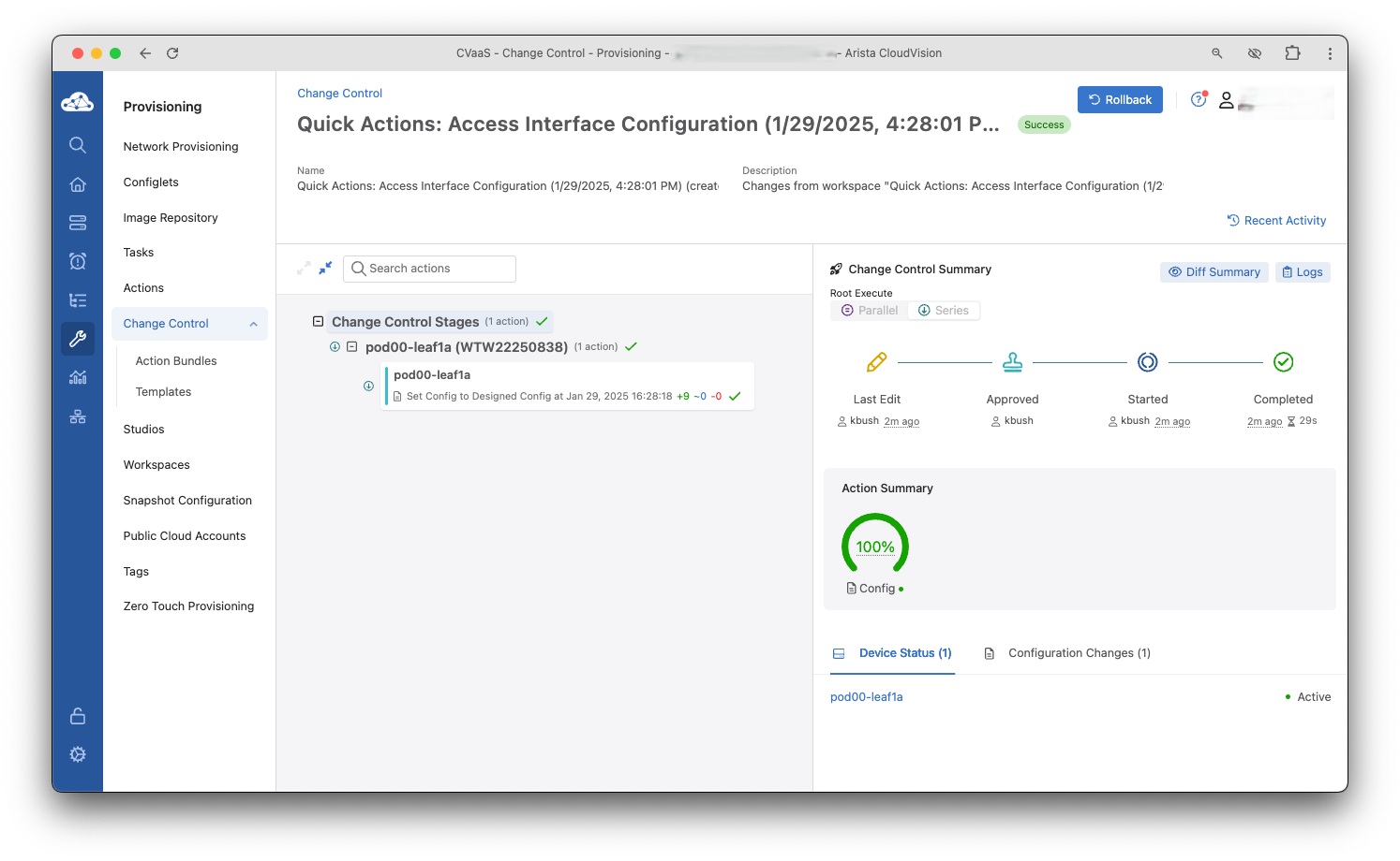 Quick actions is using the same CloudVision Change Control workflow, the exception here is it's auto approved to allow low risk/impact changes easier. You can view this change control in the