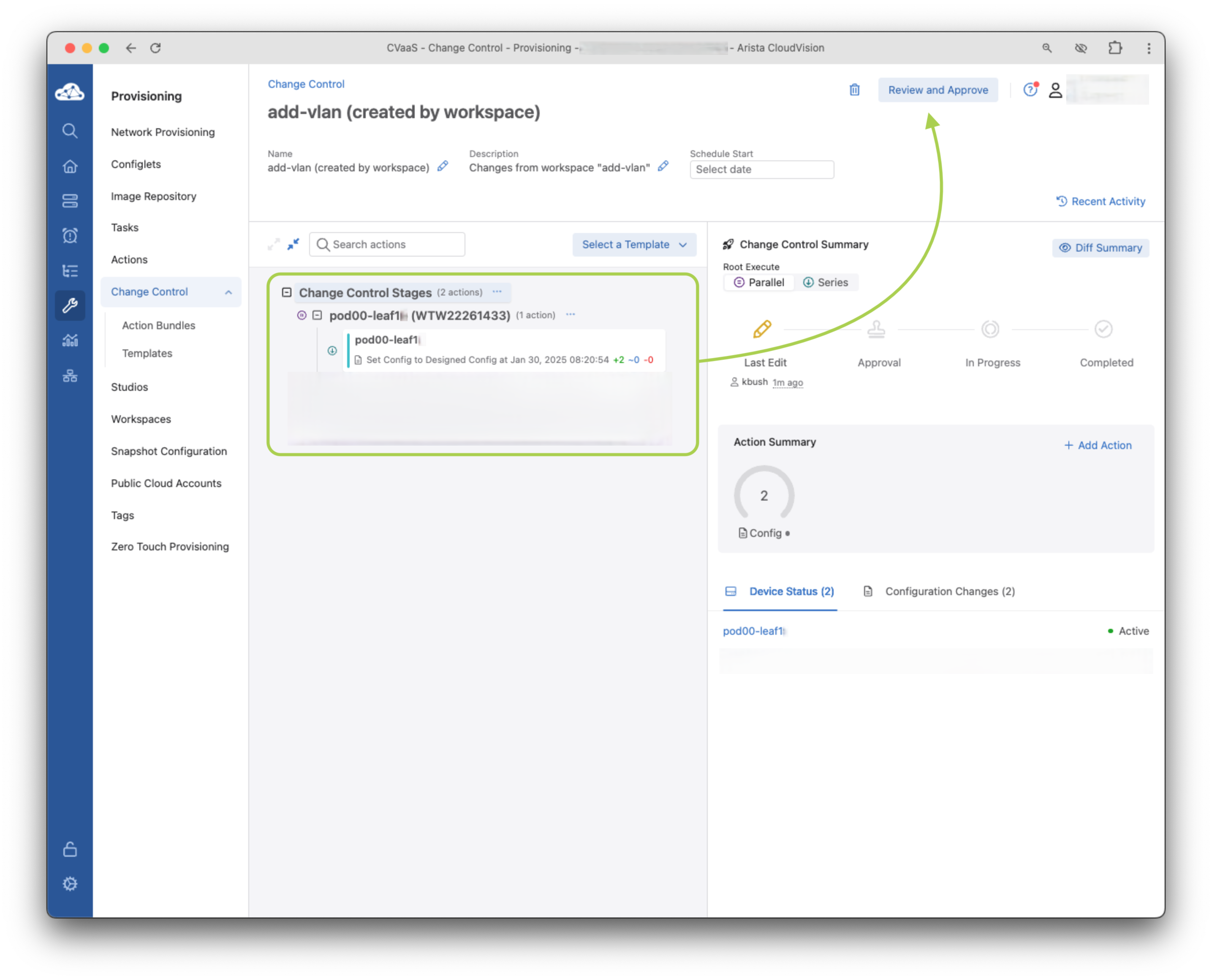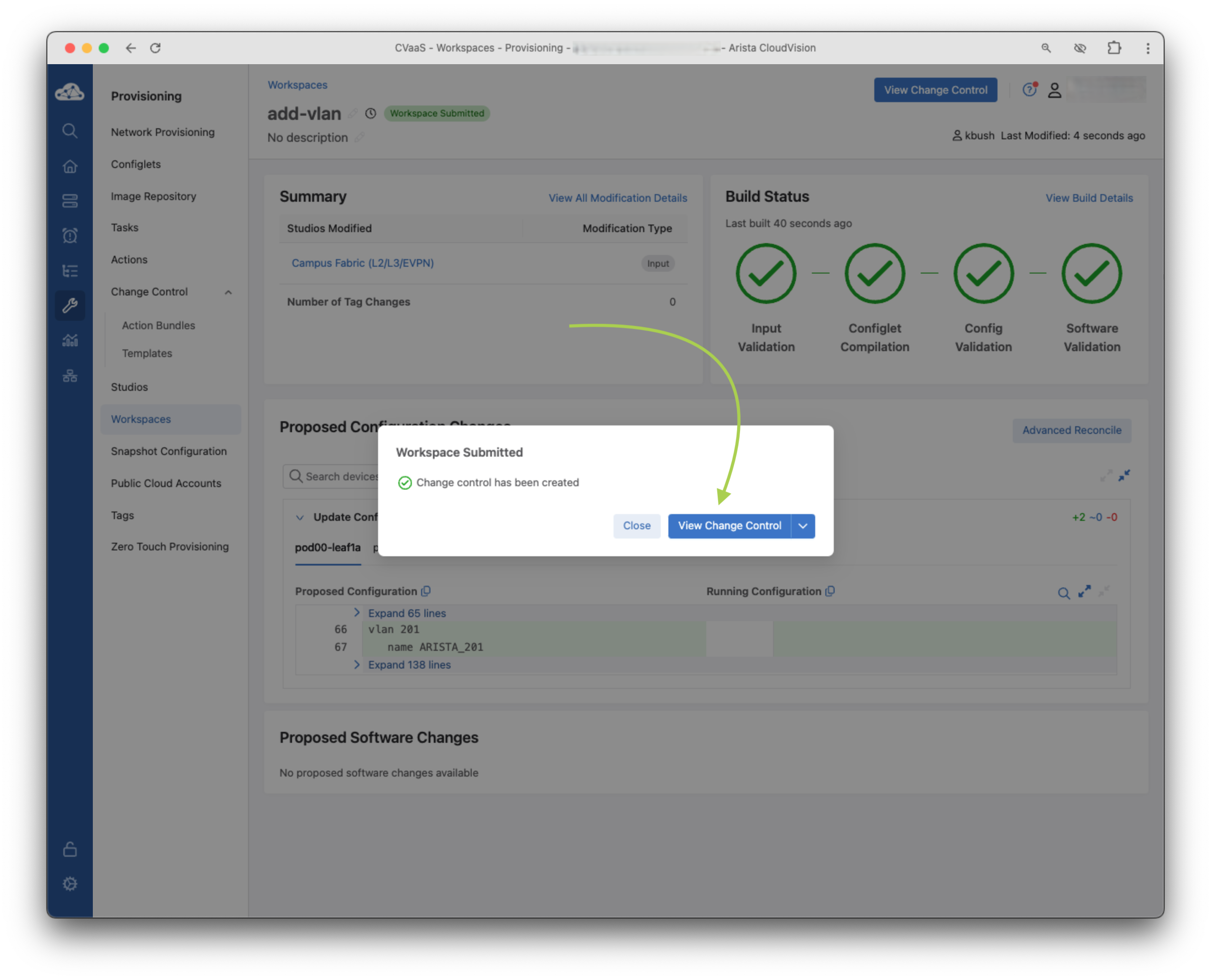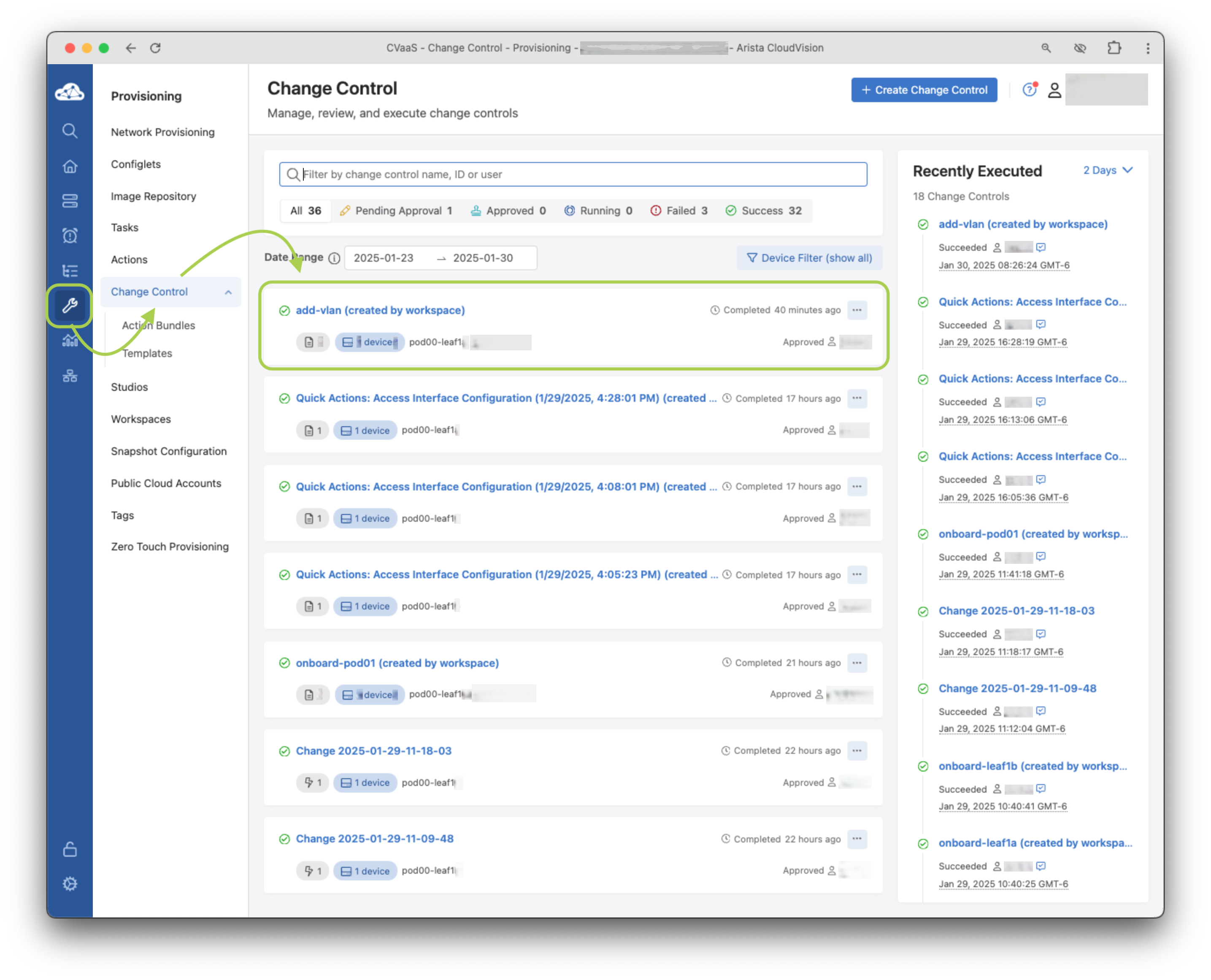 ProvisioningthenChange Control. Select the change control corresponding to your VLAN addition -