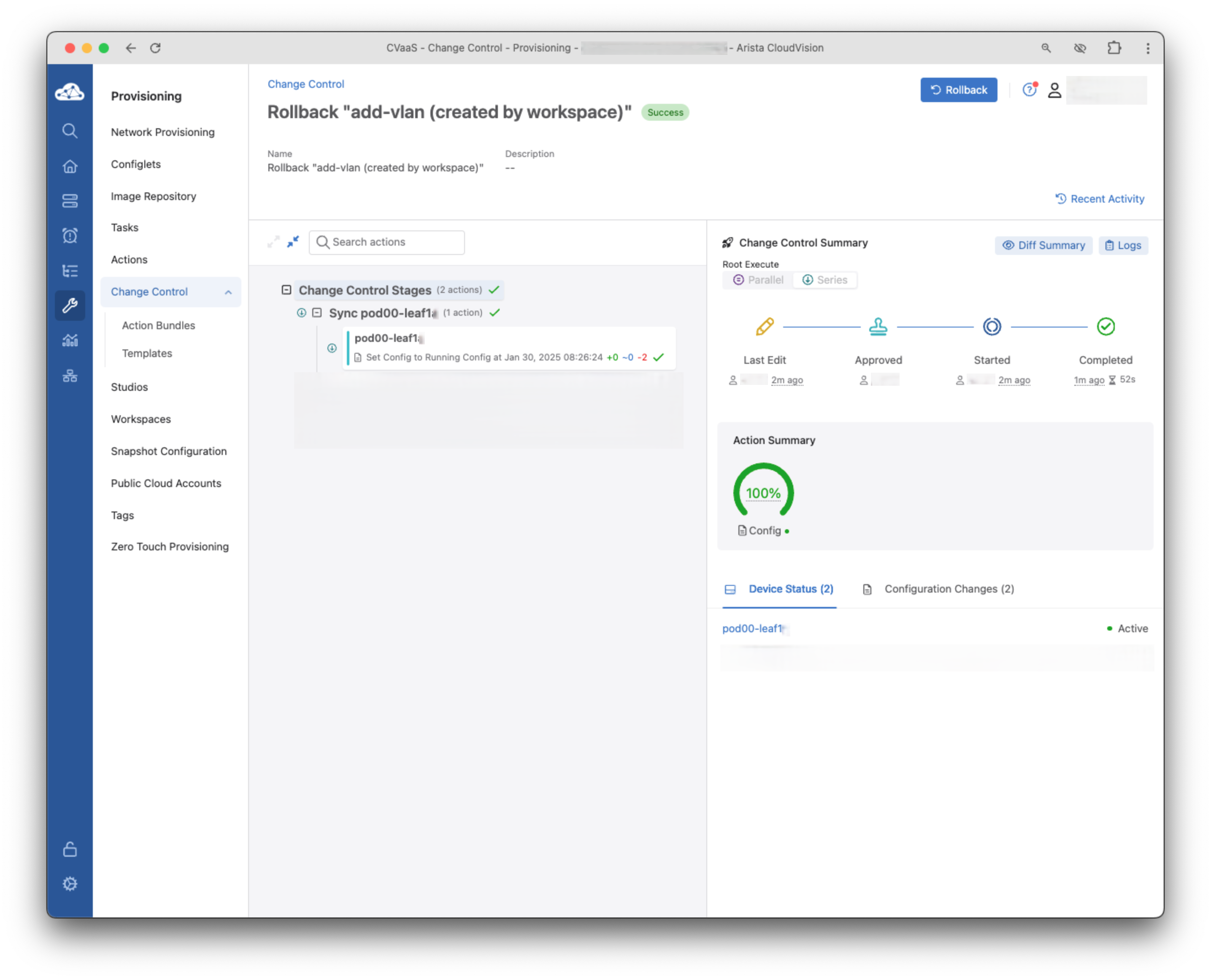 CloudVision Change Controls are built with this flexibility in mind, granular change management per device or fleet-wide. Specifically targeting actions or tasks that have taken place can be identified and rolled back when needed.
