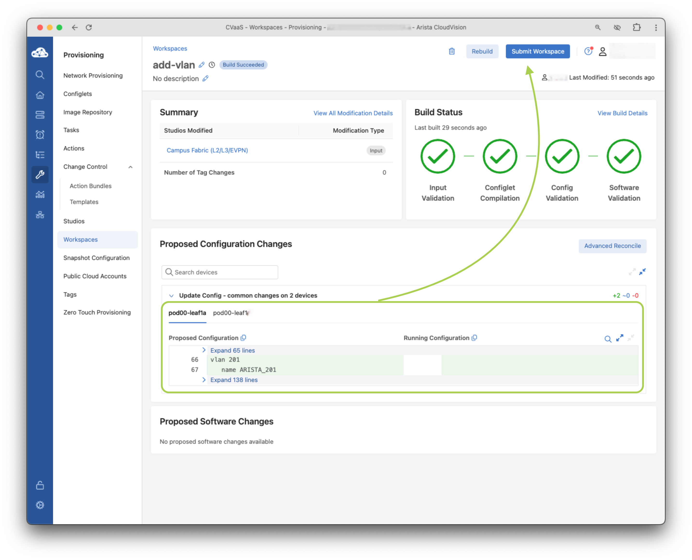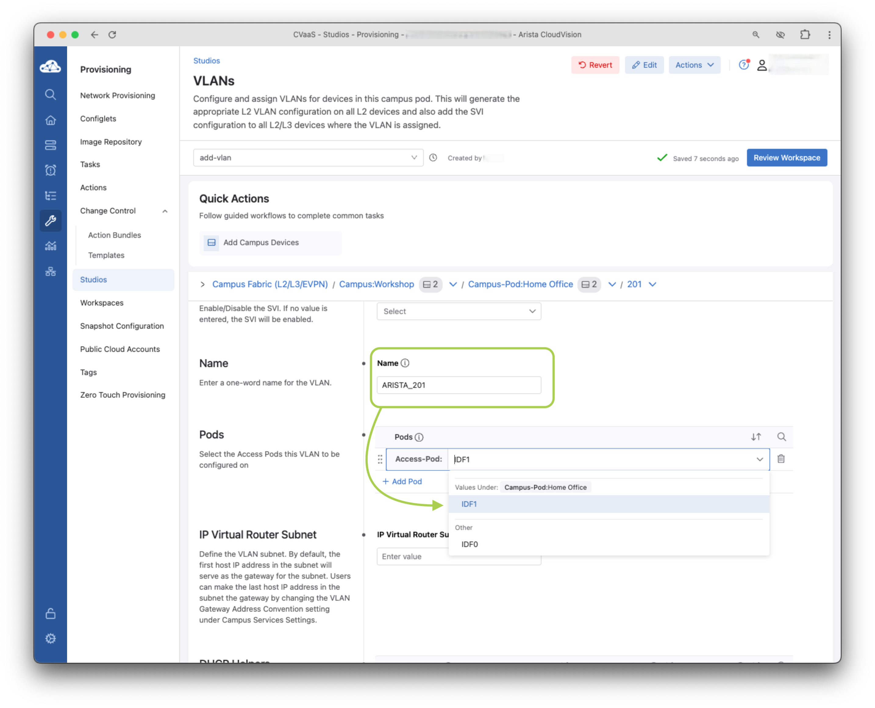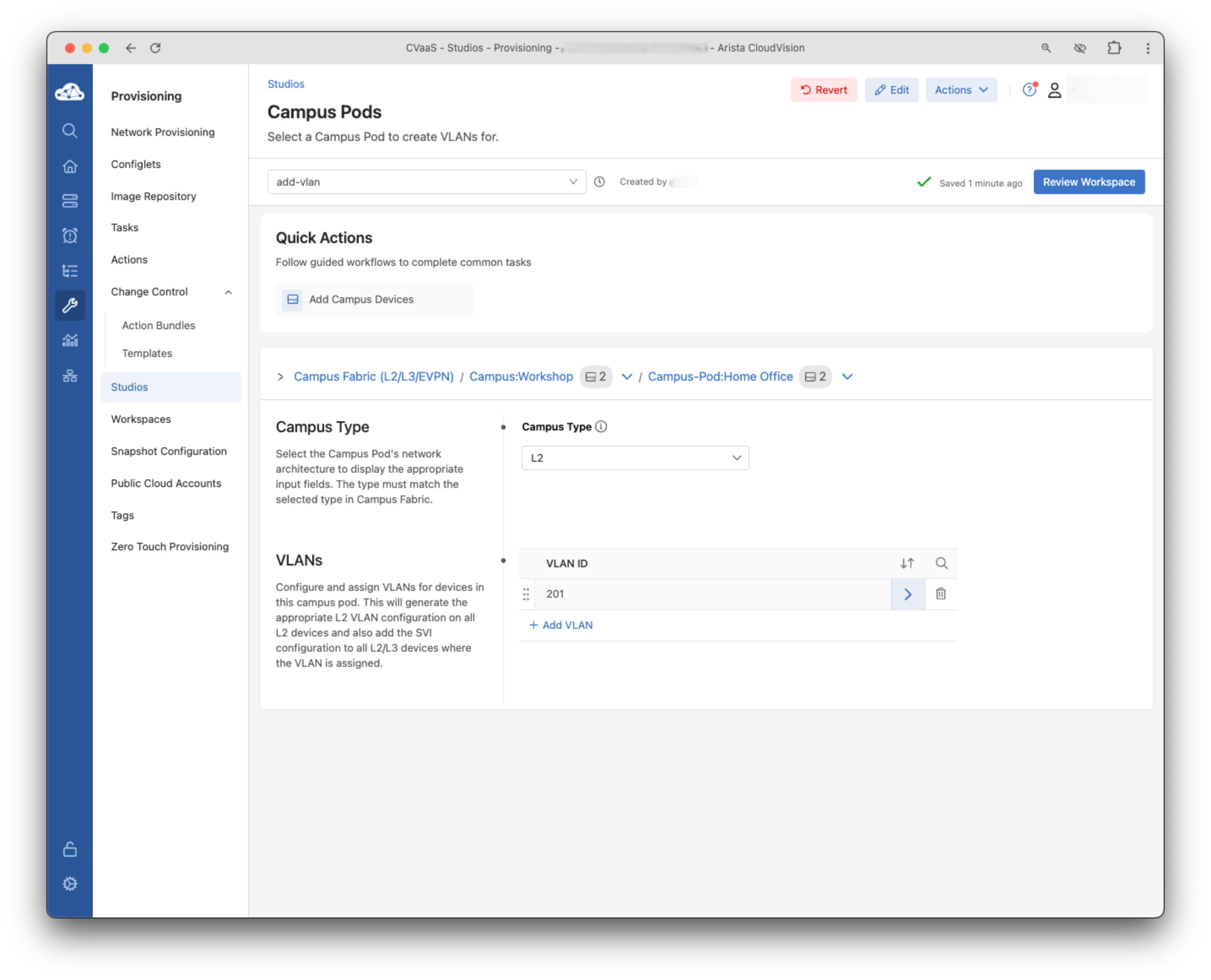 Notice that the Studio is adding the VLAN to the two devices within the Pod.