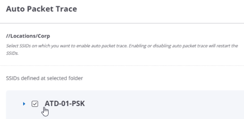Auto Packet Traceand select the checkbox for the SSID you created earlier (ATD-##-PSK). -