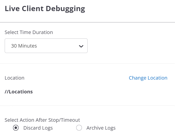 30 Minutesin theTime Durationdrop down box, select theDiscard Logsradio button, then clickStart. -