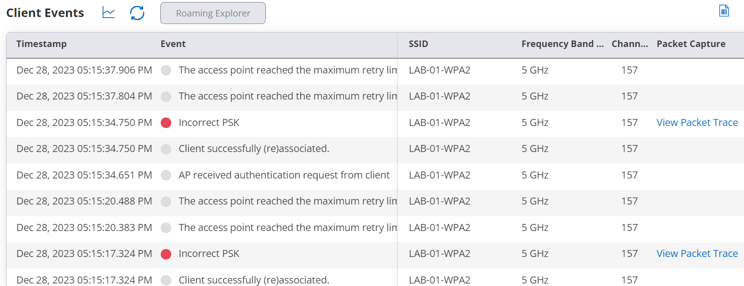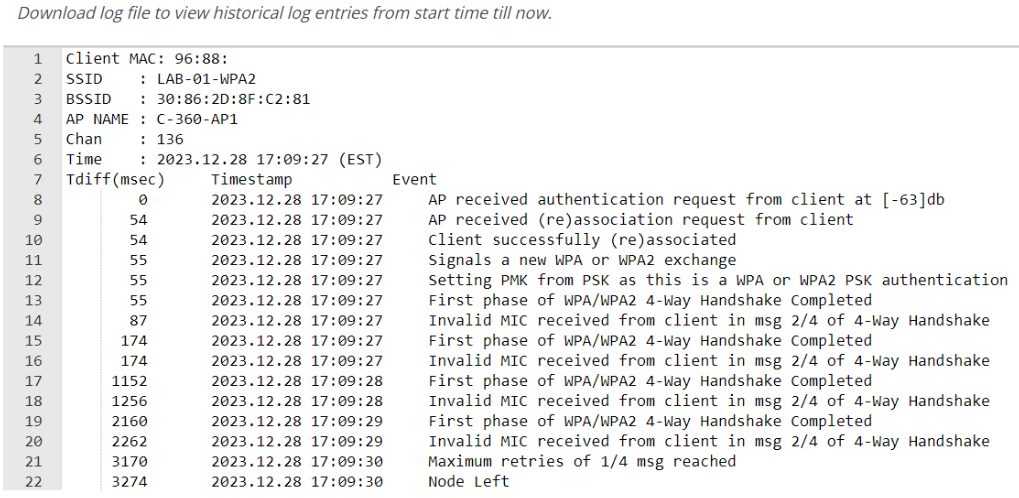 Next, try connecting the device again with the Wrong PSK. Watch and review the
