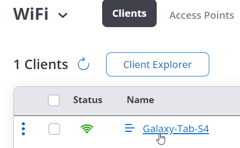 Once your device has successfully connected to the AP, click on the client name to learn more about the client (on the previous browser tab).