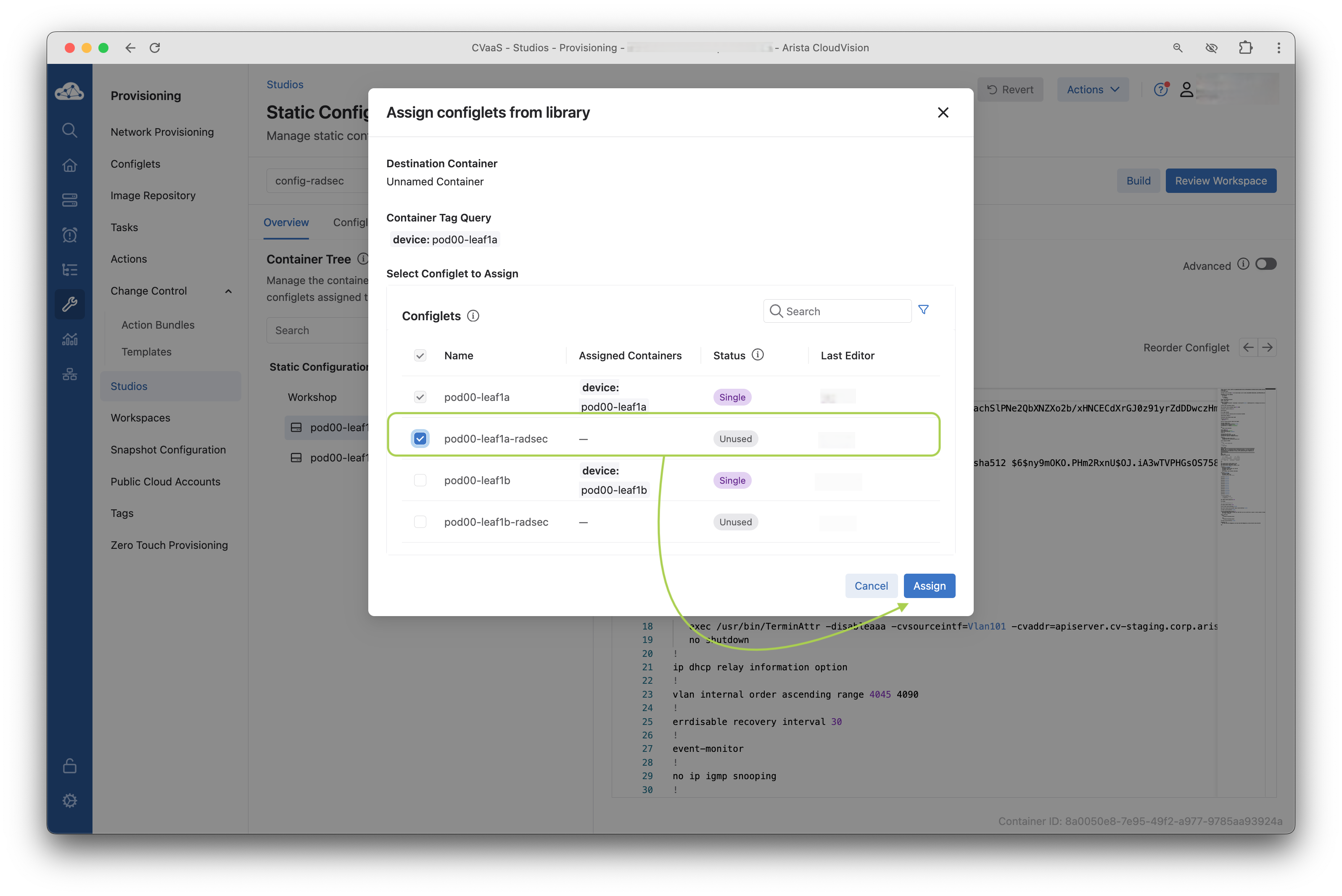 radsecand clickAssignto add the configlet to the switch