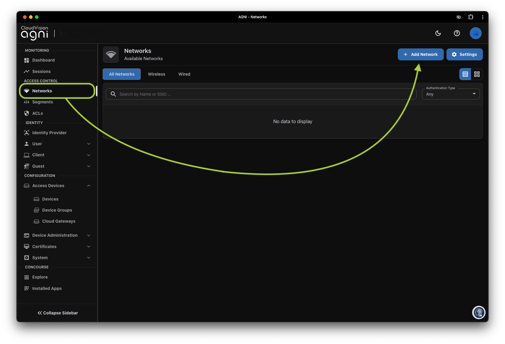 Networksand select+ Add Network -
