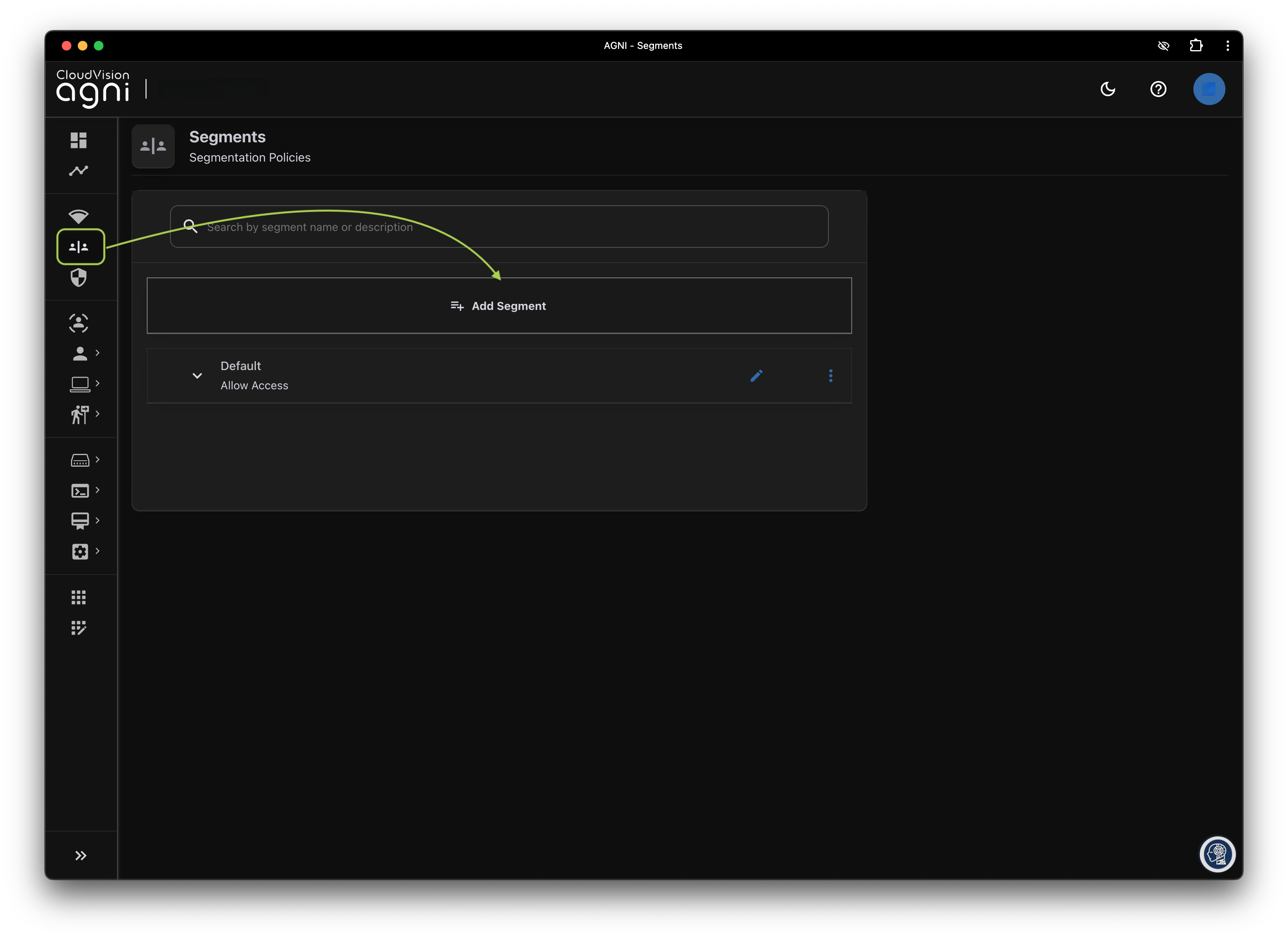 Add Segmentat the bottom of the page. -