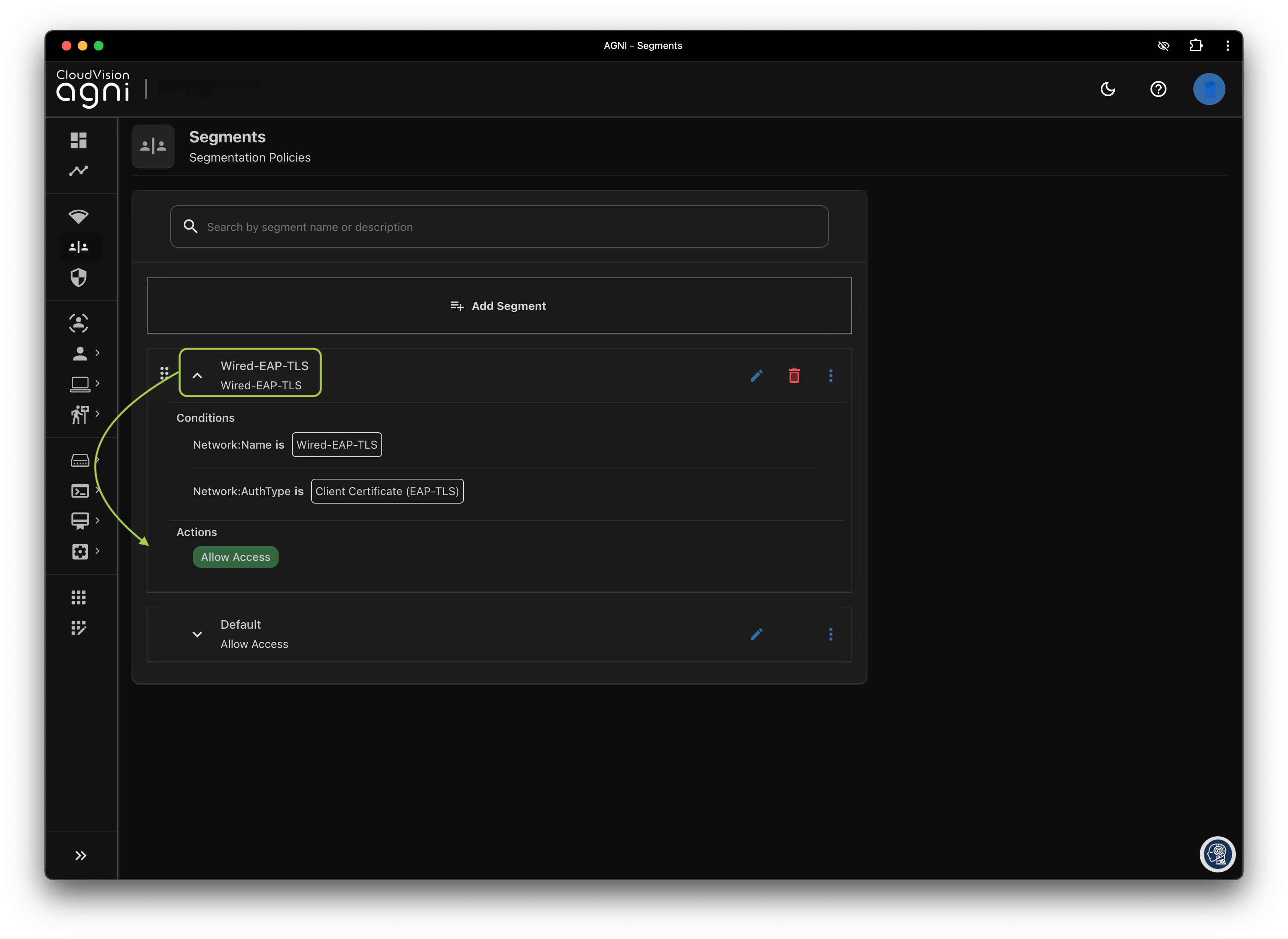 In this section we will create a Network and Segment in CloudVision AGNI to utilize a certificate based TLS authentication method on a wired connection with a Raspberry Pi.