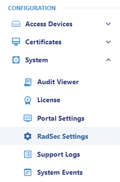 Configuration → System → RadSec Settingson the left hand side.Copy the FQDN