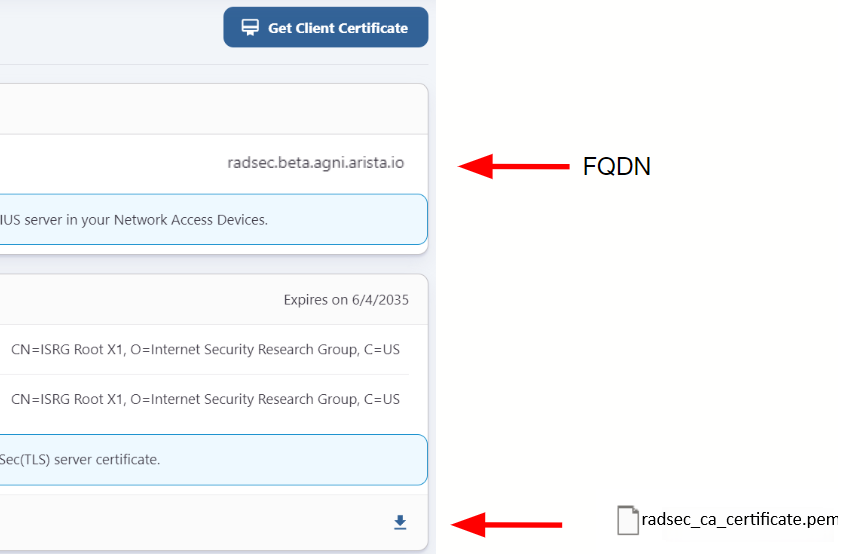 radsec.beta.agni.arista.ioandDownload the Certificateat the bottom. -