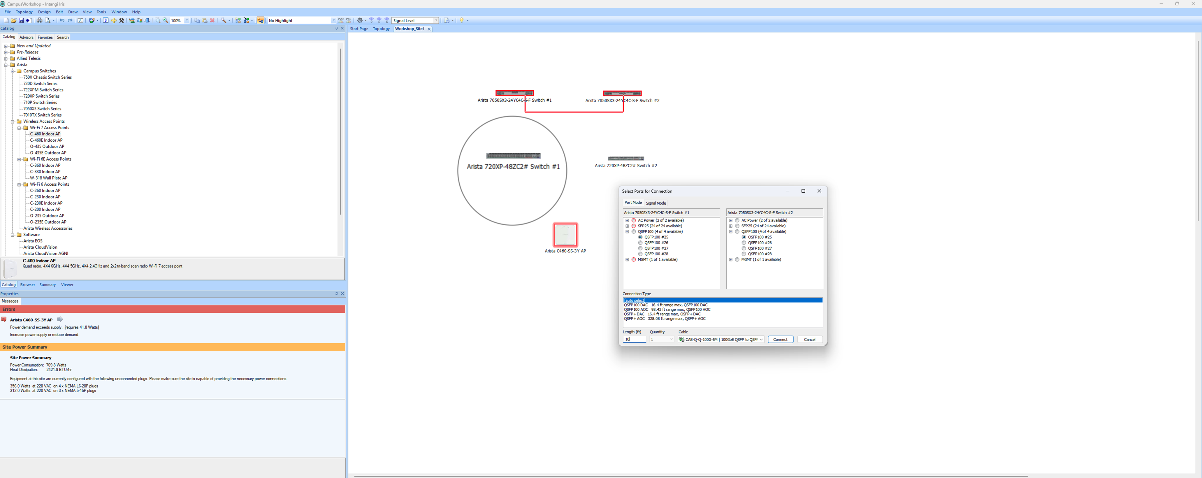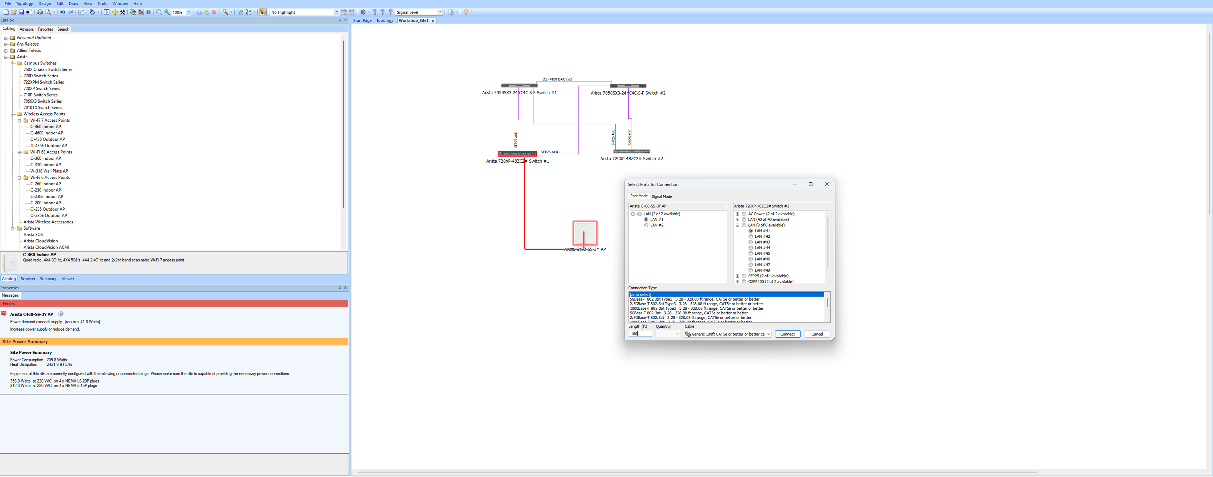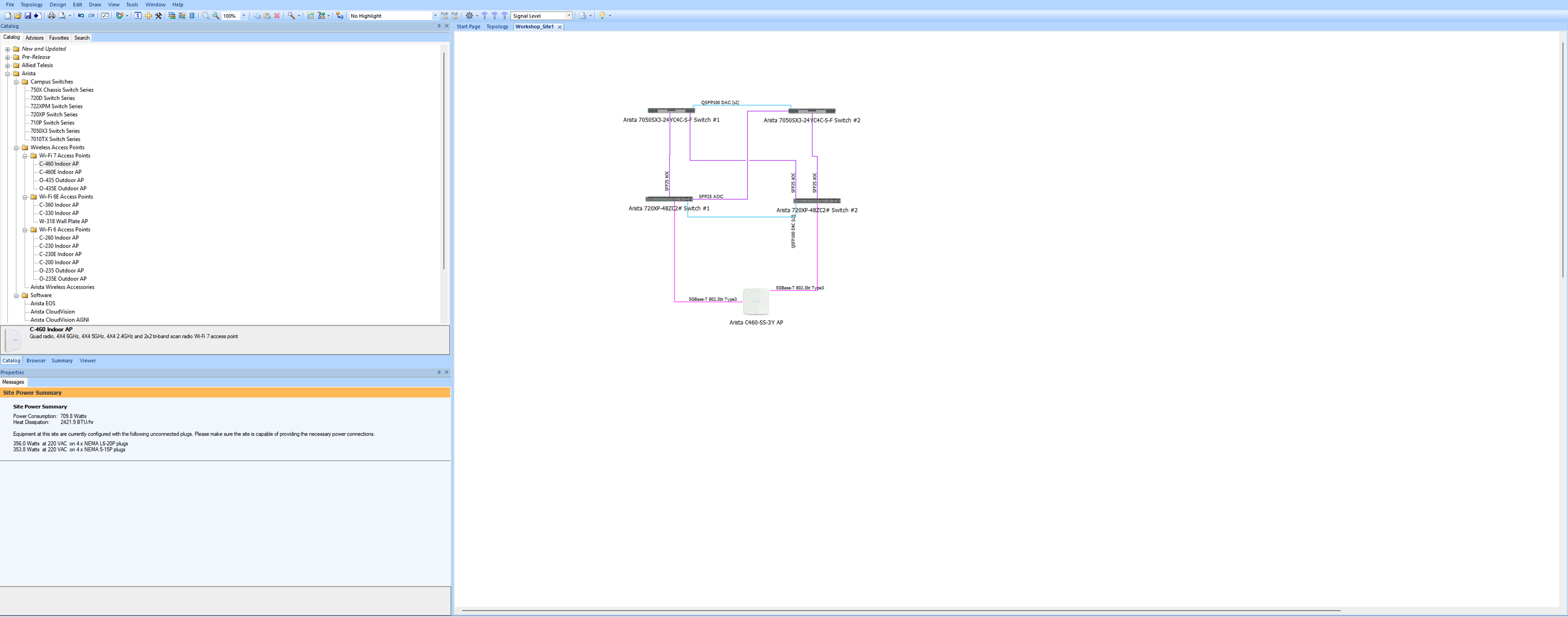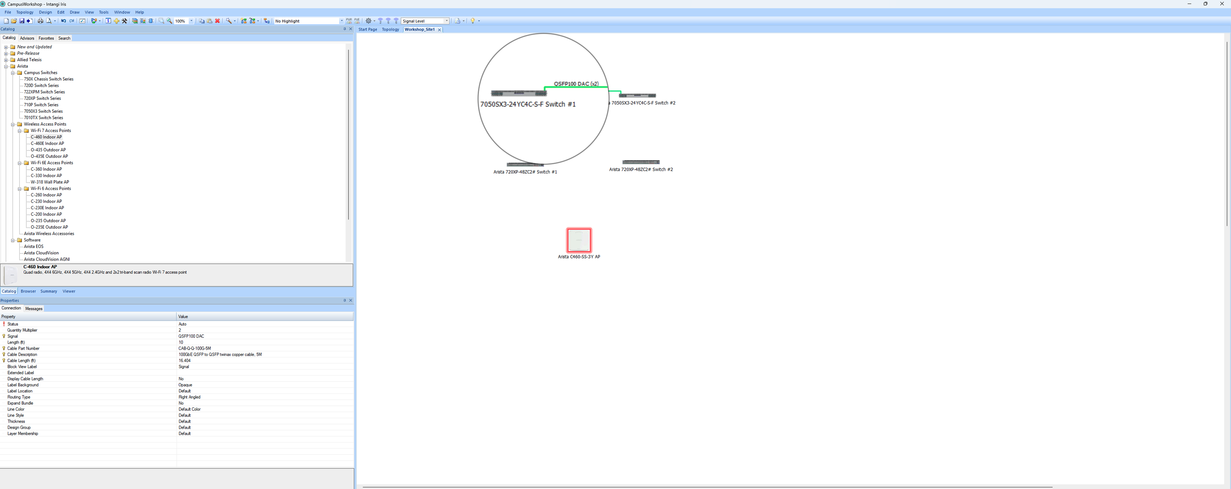 Wireless Access Pointsand select theC-460WiFi7 model. Cut-and-paste the device on the site workspace to build a two-switch active-active wireless layer.