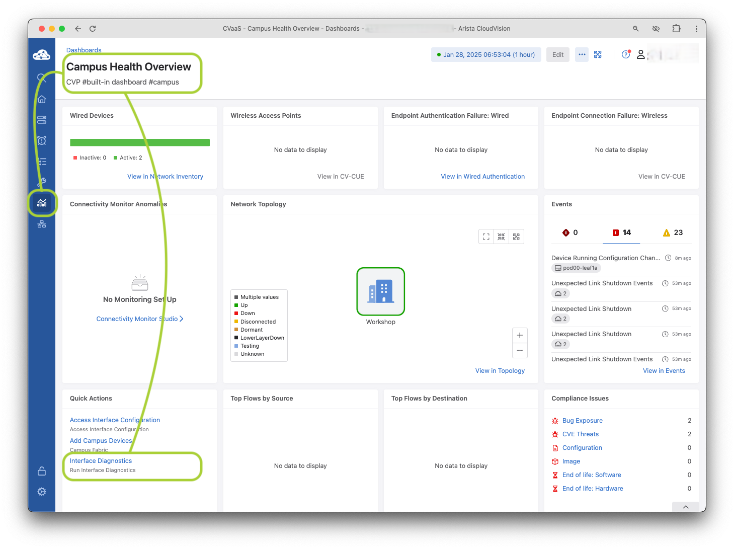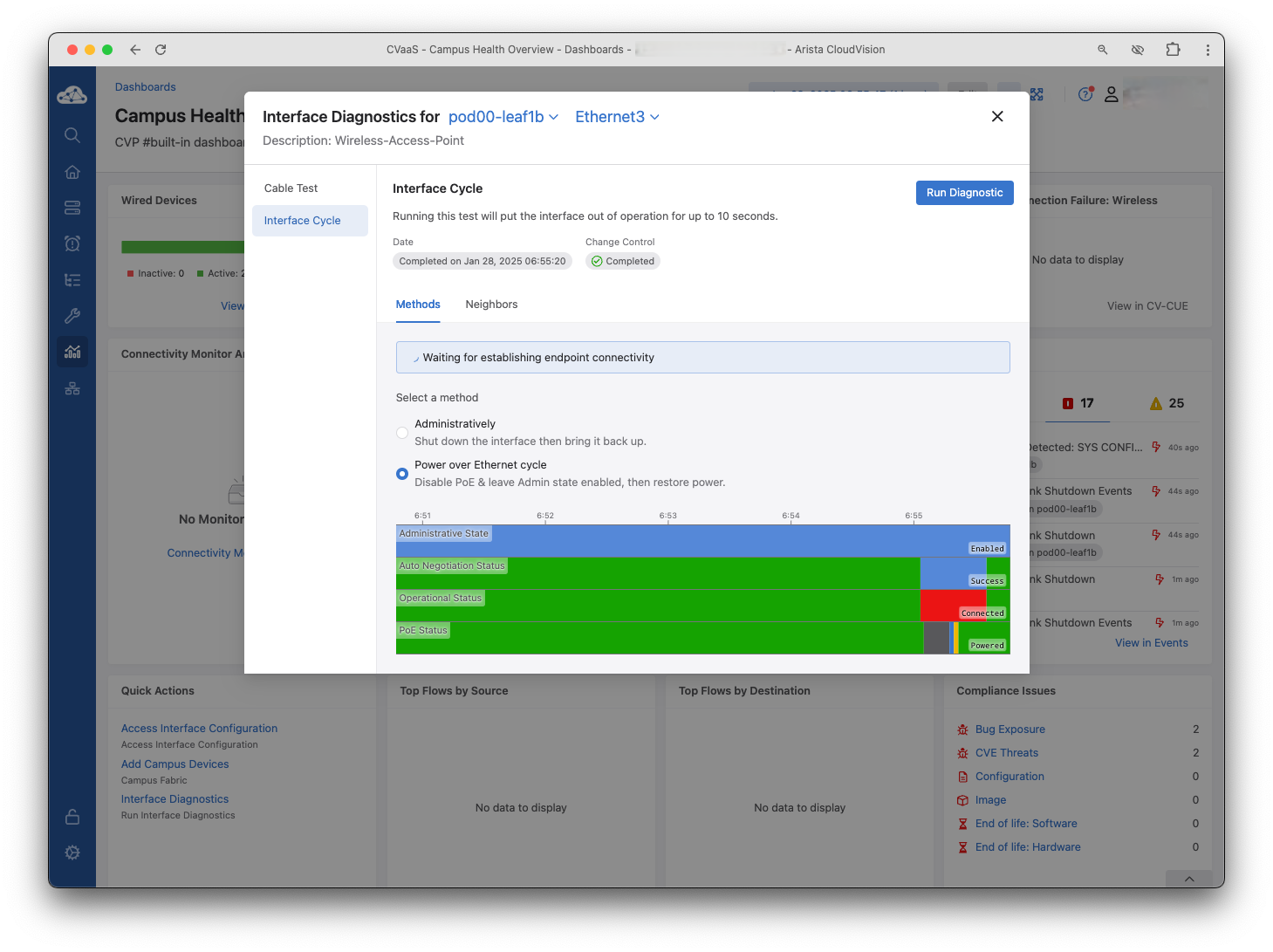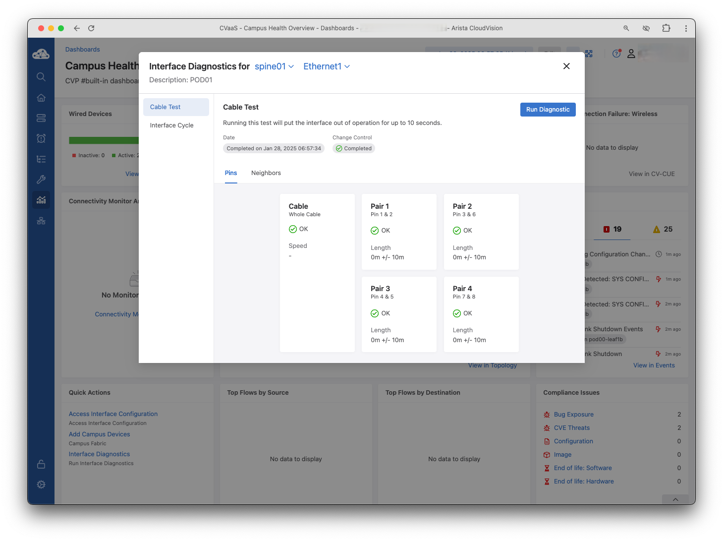 The CloudVision Campus features are targeted at streamlining Campus operations, interface diagnostics are no exception to this! You have tools at your fingertips to troubleshoot wired endpoints.
